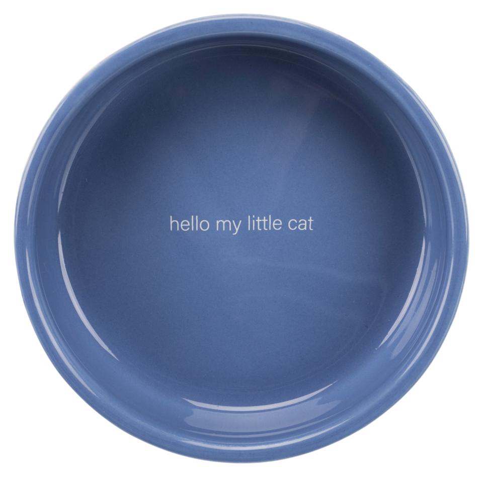 Design: Med illustrasjoner av katter på sidene – Med teksten «Hei, lille katten min» i bunnen av skålen
