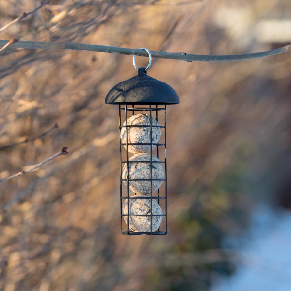 Enkel å henge opp i hagen, på balkongen eller uteplassen, og gir småfuglene trygg tilgang til energirik mat.